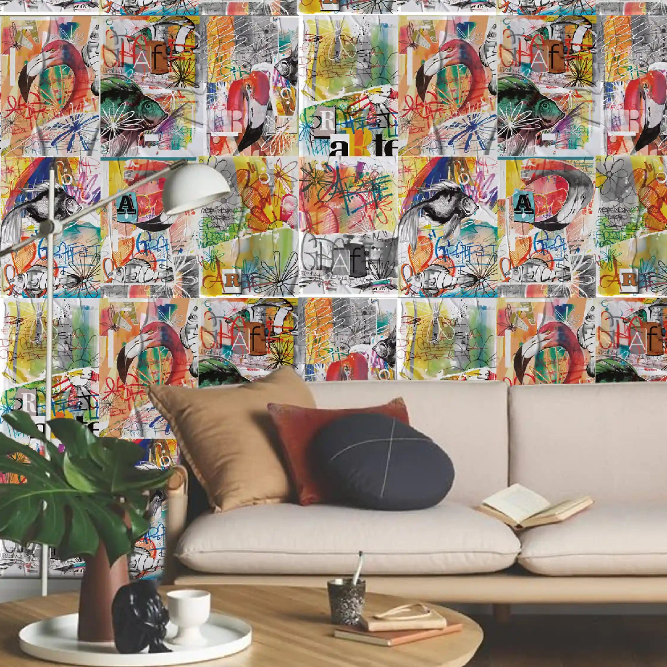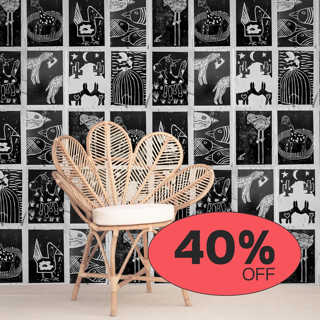 A aplicação é simples: cola branca, um rolinho e um paninho — e pronto. Você cobre até 5 m² de parede e cria desde uma composição inteira até pequenos blocos visuais. O lambe-lambe permite experimentação total: misture coleções, mude de lugar, conte histórias e deixe o ambiente com a sua cara.