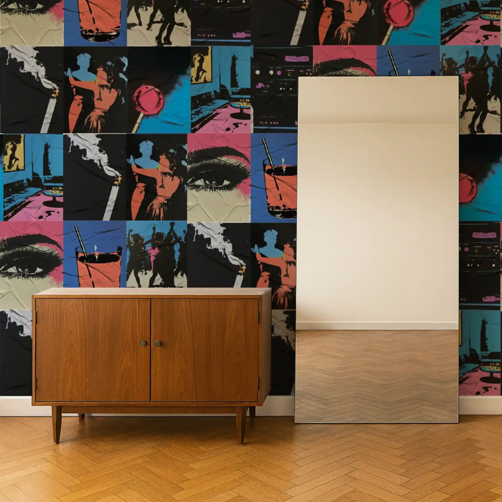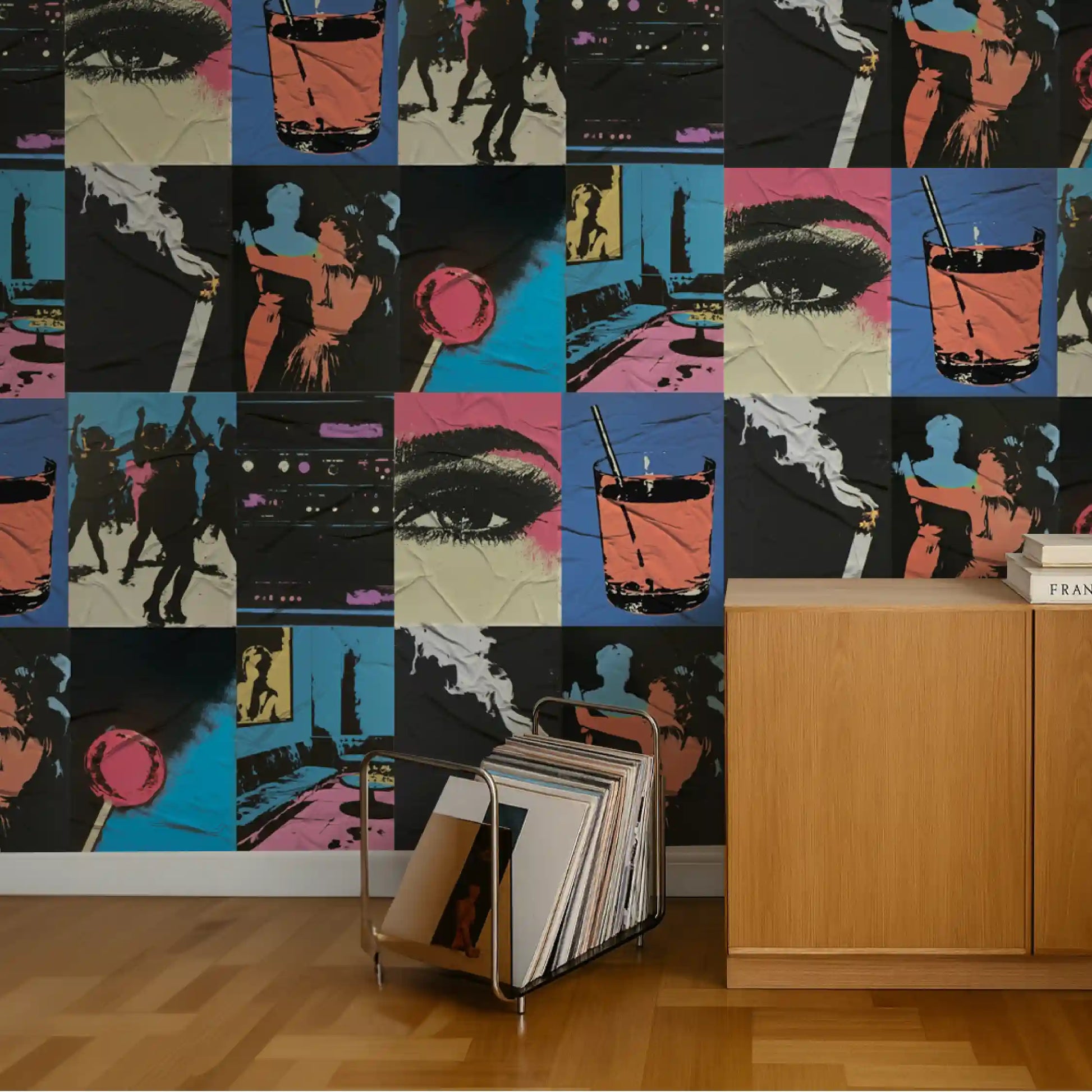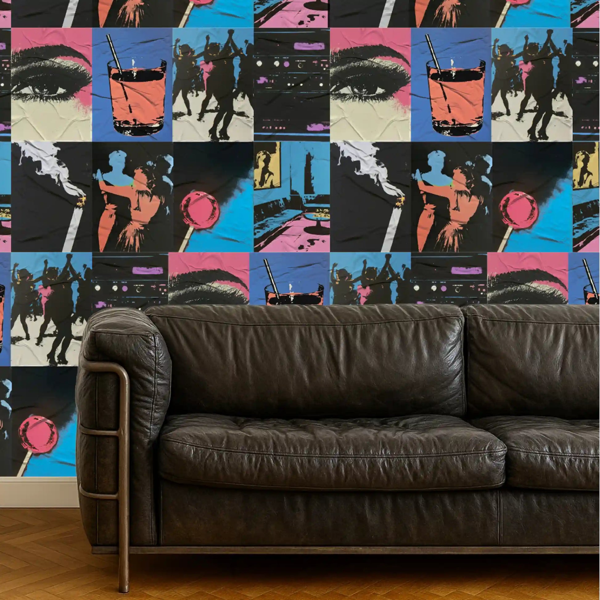Inspirado no nightlife e na estética vibrante de Andy Warhol, Party All Night celebra a energia da noite, os encontros e a cultura pop. Com cores intensas e composições que lembram a explosão criativa dos anos 70 e 80, é o lambe perfeito para ambientes que pedem atitude e movimento.
