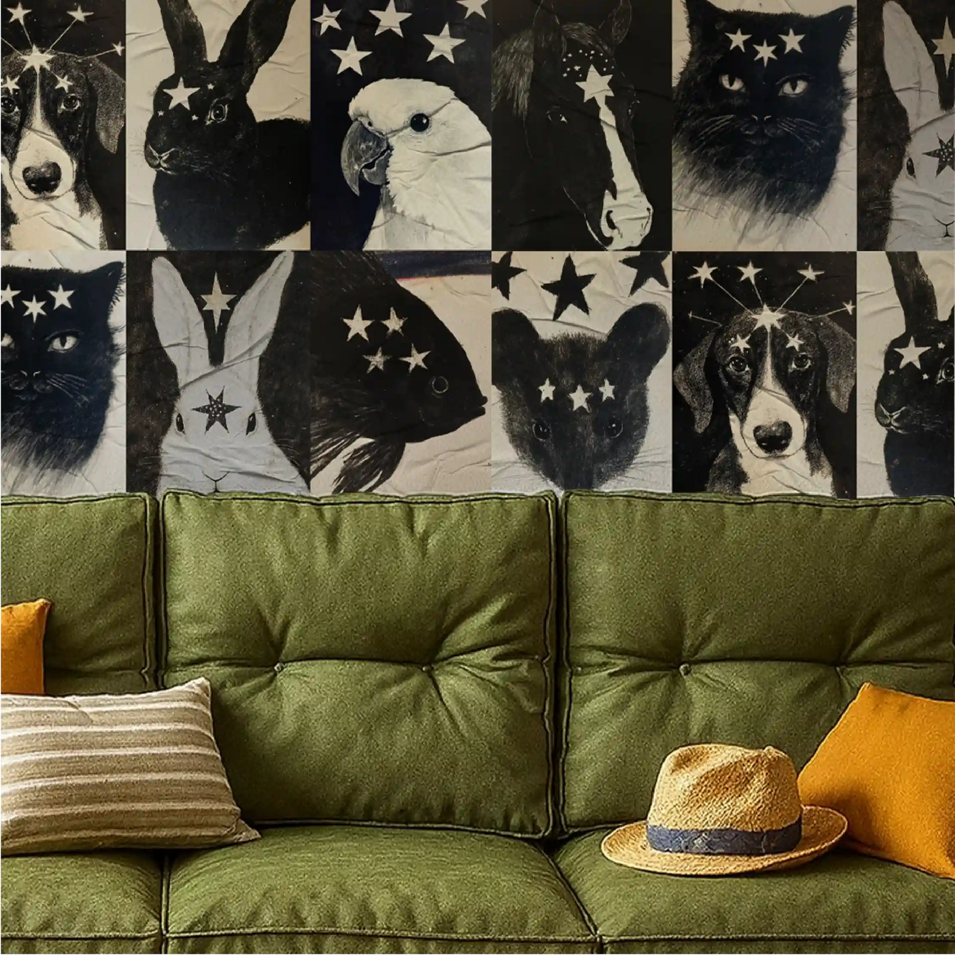 Com ilustrações divertidas e expressivas de animais de estimação, este kit celebra a alegria de viver com nossos companheiros. Um toque afetuoso e descontraído para qualquer cantinho.
